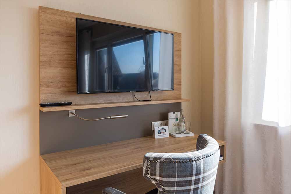 Alle Zimmer verfügen über TV mit Satelliten-Empfang, bieten kostenloses High-Speed-WLAN und einen Schreibtisch – mit ausreichend Steckdosen zum Arbeiten oder um Ihren Lieben zu Hause ein paar nette Urlaubsgrüße aus dem schönen Ost-Westfalen zu schicken.